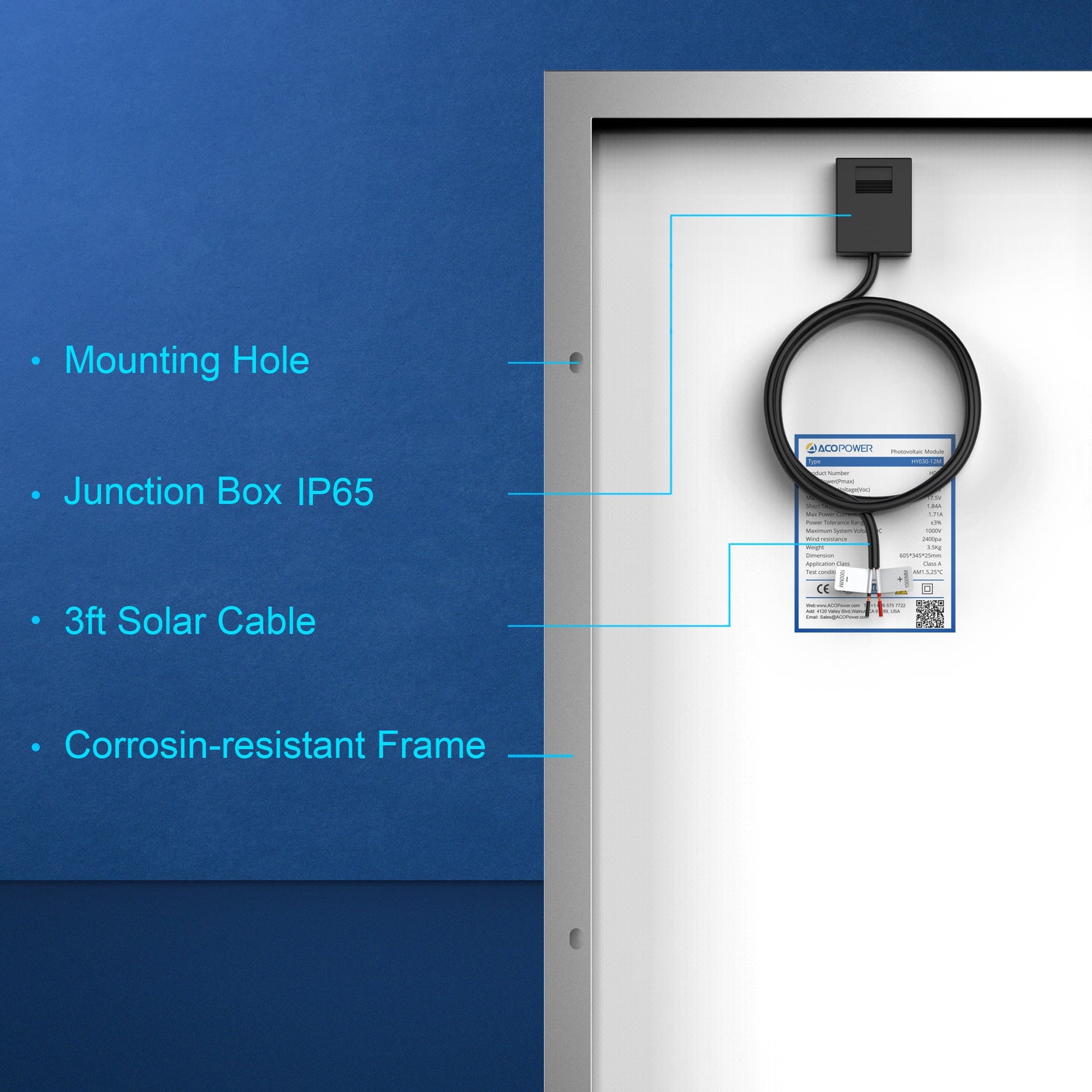 - 30W High Efficiency – Monocrystalline cells for reliable 12V charging.